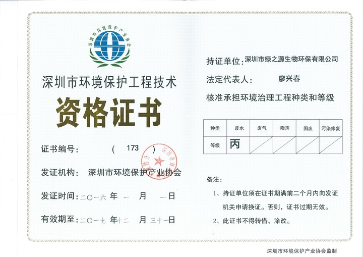深圳市綠之源生物環(huán)保有限公司成立十余年,是經(jīng)深圳市環(huán)保局批準的具有專項環(huán)保工程設計資質的企業(yè),深圳市高新技術企業(yè)。公司從創(chuàng)立初期的水處理藥劑、水處理設備的研發(fā),逐步成長為環(huán)保類綜合性服務的企業(yè),目前年營業(yè)額約三千萬,集水處理藥劑研發(fā),工業(yè)廢水、廢氣及農村生活污水處理等環(huán)保工程的設計、安裝、調試、運營、技術咨詢一條龍服務,為珠三角眾多企業(yè)服務,解決相關環(huán)保難題,并取得了良好的社會效益和環(huán)境效益。